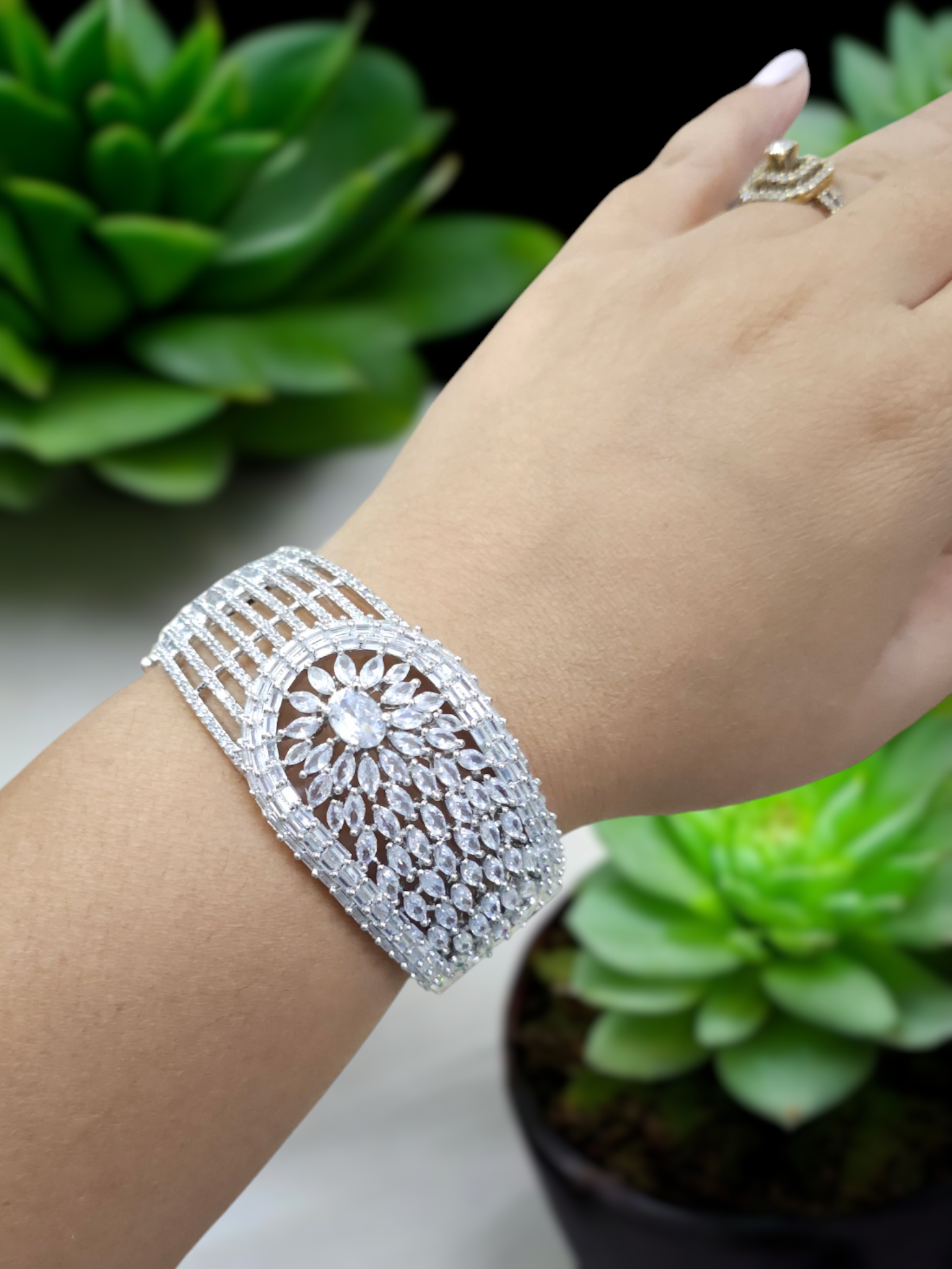 American Diamond Set - Crystal Bloom Silver Necklace - Semi Bridal | Festive | Daily Wear